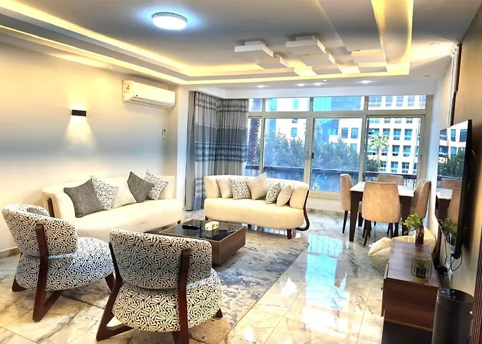 New Modern Apartment Front Of Citystars Cairo features views of the street and is situated 15 minutes' walk from the City Center. Guests will enjoy Wi-Fi, and private parking provided on site.